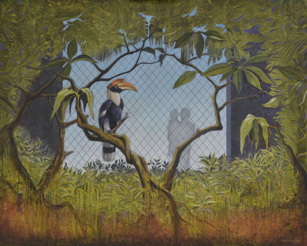 In zijn schilderijen spelen dieren meestal de hoofdrol. De setting waarin zij zich geplaatst zien, is echter ongebruikelijk. Hierdoor ontstaat een lichte vervreemding die voor de toeschouwer verrassend werkt.